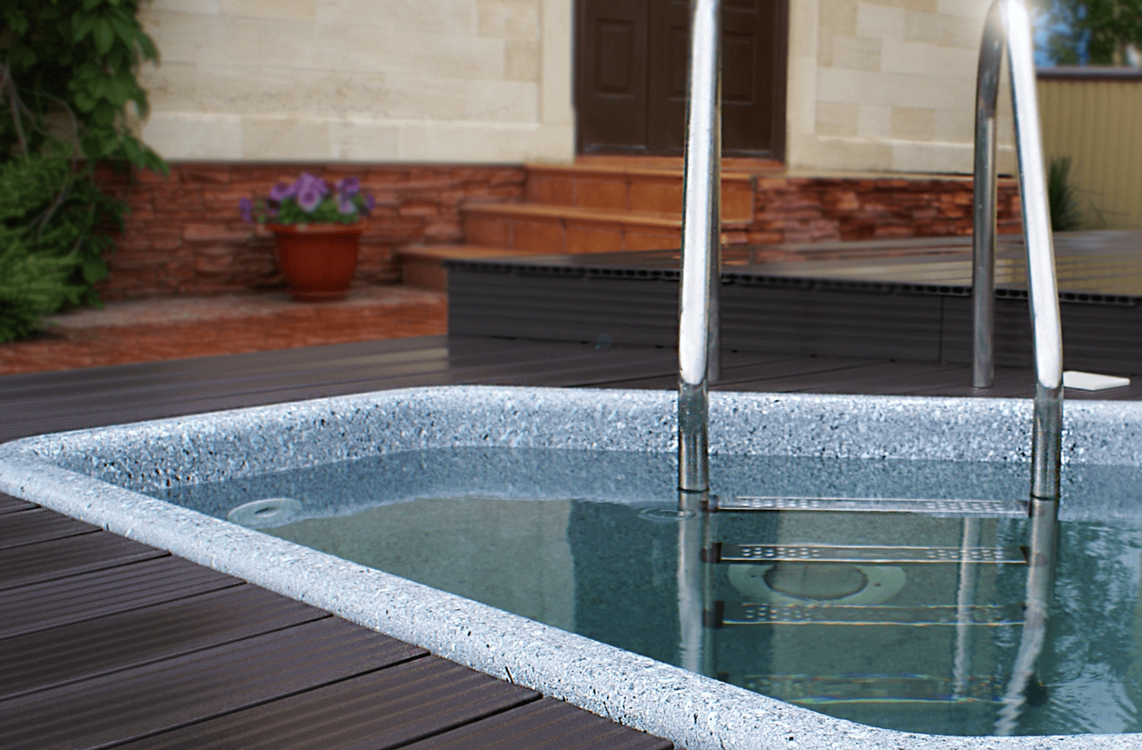 Покрытие 4D «Дианит» - таинственный и магический цвет голубых нефритов. Вода бассейна с покрытием «Дианит», отличается особенным «свечением» и бархатным переливом.